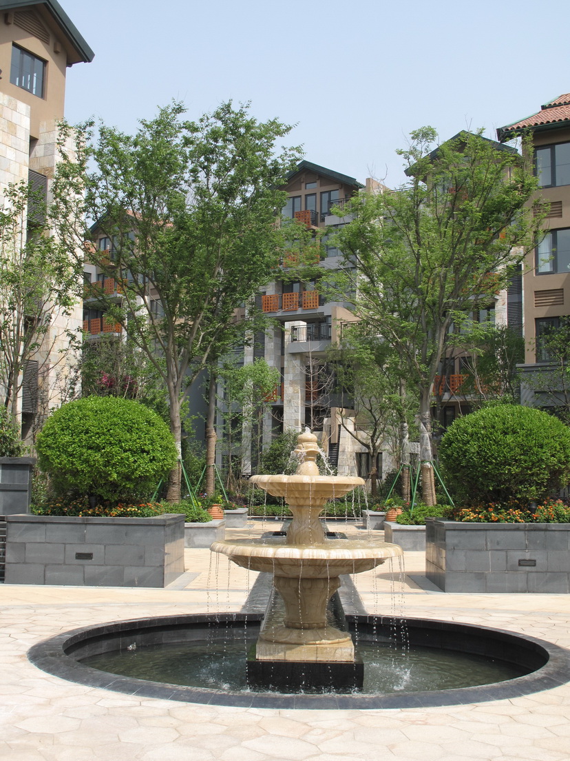 設(shè)計(jì)力求將別墅庭院打造成“室外會(huì)客廳”;下沉庭院中真火壁爐,讓人聯(lián)想到冬夜里圍坐烤火,細(xì)數(shù)星空的溫暖場(chǎng)景;而屏風(fēng)墻、小水法、流淌于彩色馬賽克景墻上的潺潺流水,有仿佛置身于西班牙的幻覺。