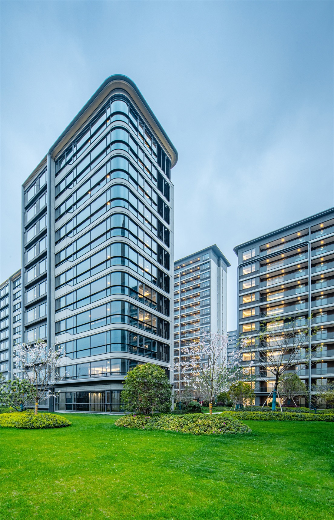 純現(xiàn)代材料語言,玻璃與鋁合金的搭配,賦予建筑現(xiàn)代而亮麗的特質(zhì)。舒展的線條穿插與材質(zhì)的高品質(zhì)細(xì)節(jié)結(jié)合,體現(xiàn)未來城市的面貌。頂部局部弧線收頭,暗示時(shí)尚及運(yùn)動(dòng)氣質(zhì),總體舒朗簡(jiǎn)潔又不失優(yōu)雅。